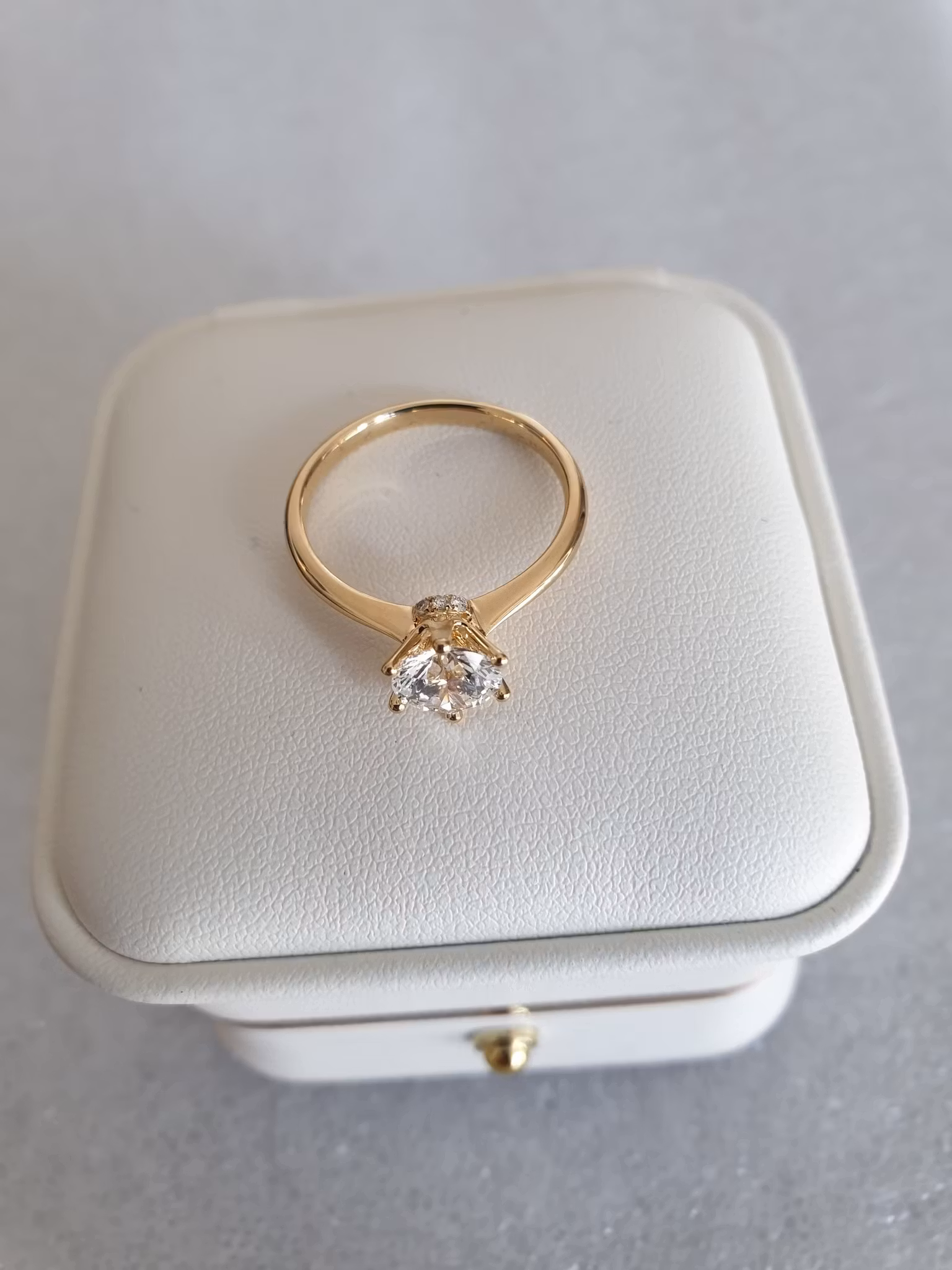 Carat weight. 1,04ct + 0,36ct sidediamanter.
