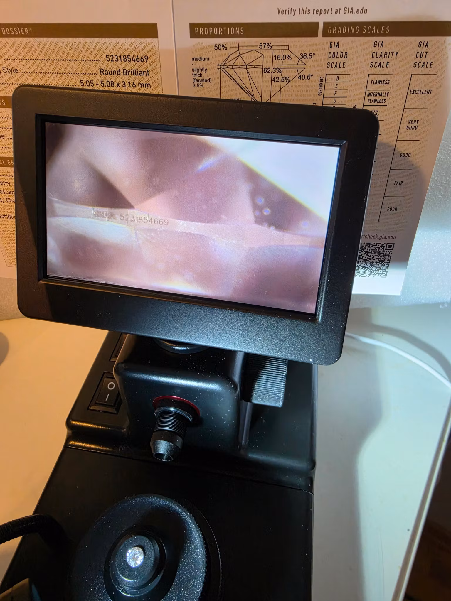 Dette er en diamant med svært høy kvalitet og sertifikat utstedt av GIA som er verdens mest anerkjente institutt på naturdiamanter. Se www.gia.edu - gå til analysis & grading og skriv inn sertifikatnummeret i feltet og du har verifisert diamanten på GIA sin nettside. GIA-nummeret finner du også laserinnskrevet inne i diamanten. SE FOTO HVOR VÅRT SPESIALMIKROSKOP VISER NUMMERET INNE I DIAMANTEN.